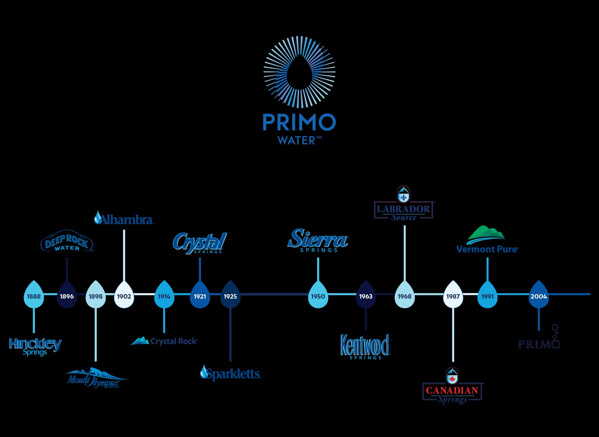 Just like our pure, refreshing spring water, Primo Water’s brand family started from the ground up. Our 12 regional partners each represent a unique part of North America and a rich history of hydration that dates as far back as 1882.