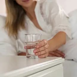 According to the Cleveland Clinic, drinking a moderate amount of water in the evening can help break down waste in your body and regulate body temperature.3 Just make sure you limit me to one glass, and cut off your intake an hour before bedtime.
