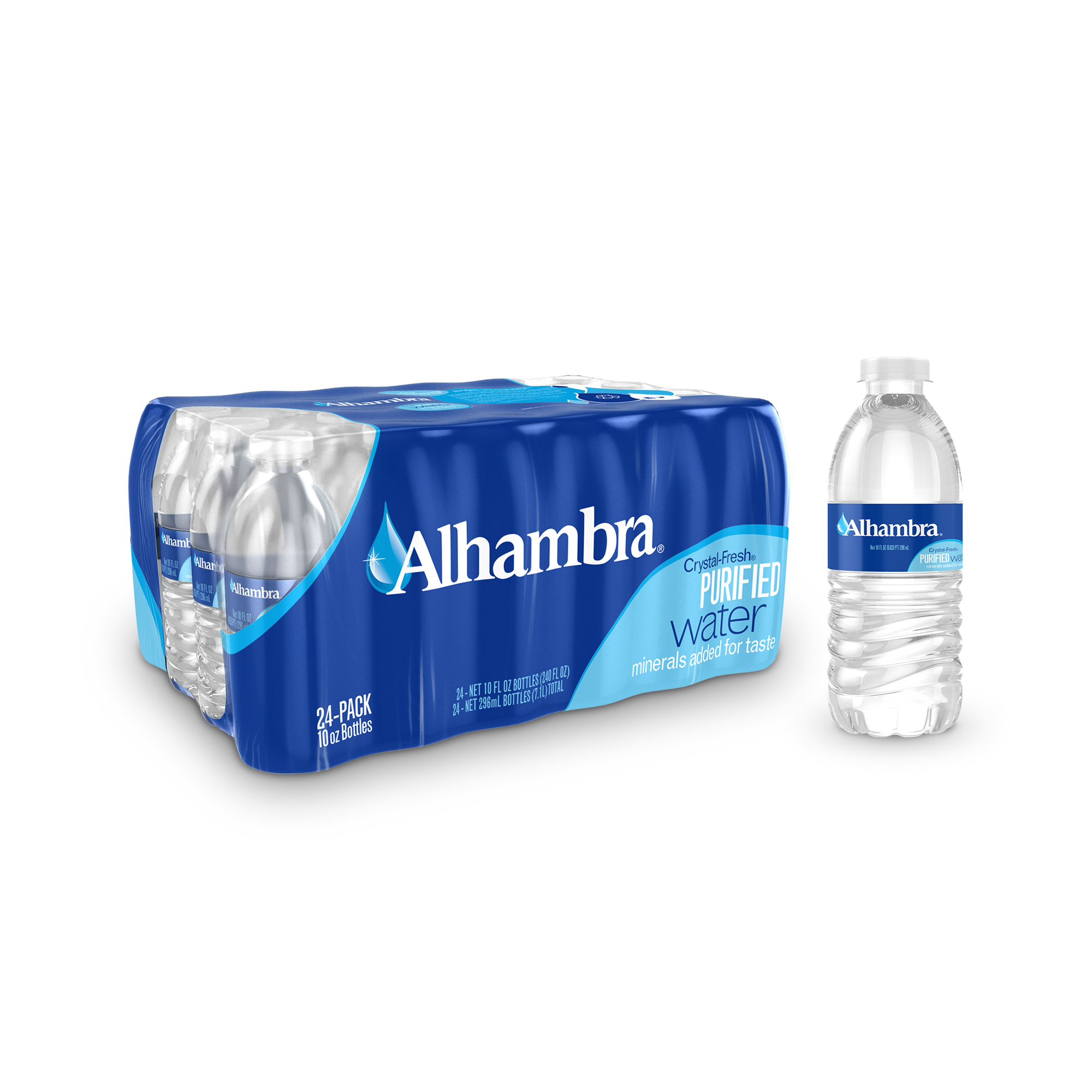 Alhambra Crystal-Fresh® 10 Oz purified water is perfect for any single-serve or on-the-go occasion.  Crystal-Fresh purified water is filtered to remove impurities like chemicals and other contaminants and is known for its crisp, clean taste.