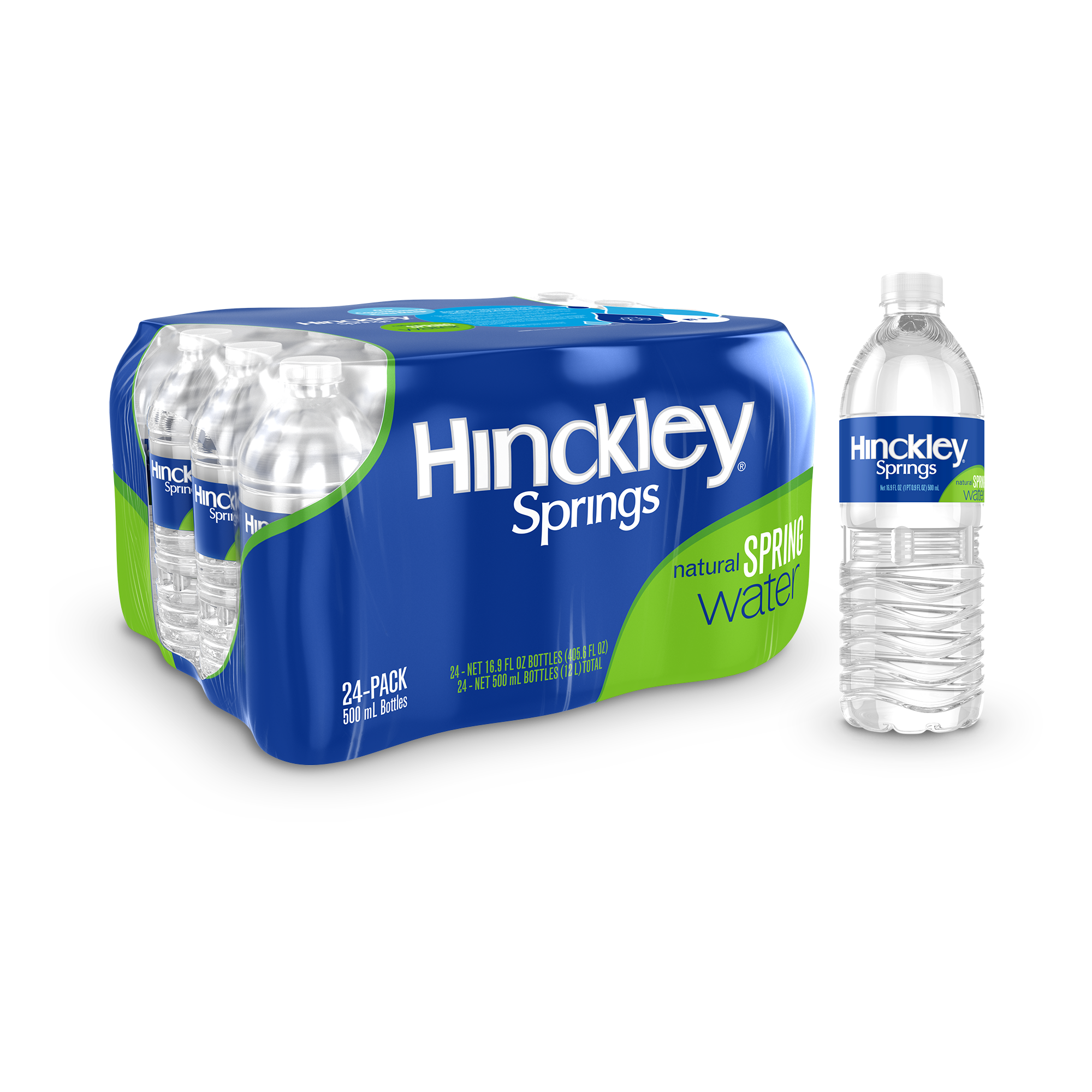Enjoy Hinckley Springs natural spring water in convenient 0.5 liter bottles. Natural spring water is collected at its source and bottled for a crisp, pure, and refreshing taste.