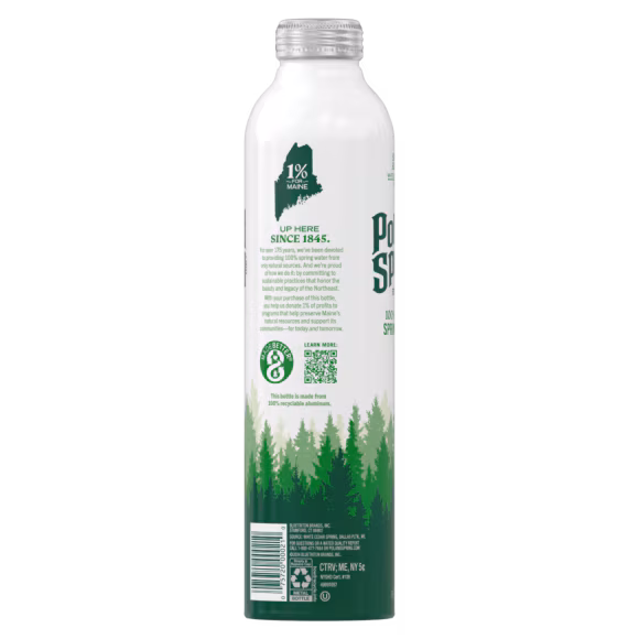 For over 175 years, we've been devoted to providing spring water from only natural sources. And we're proud of how we do it: by committing to sustainable practices that honor the beauty and legacy of the Northeast. With your purchase of this bottle, you help us donate 1% of profits to programs that help preserve Maine's natural resources and support its communities - for today and tomorrow.