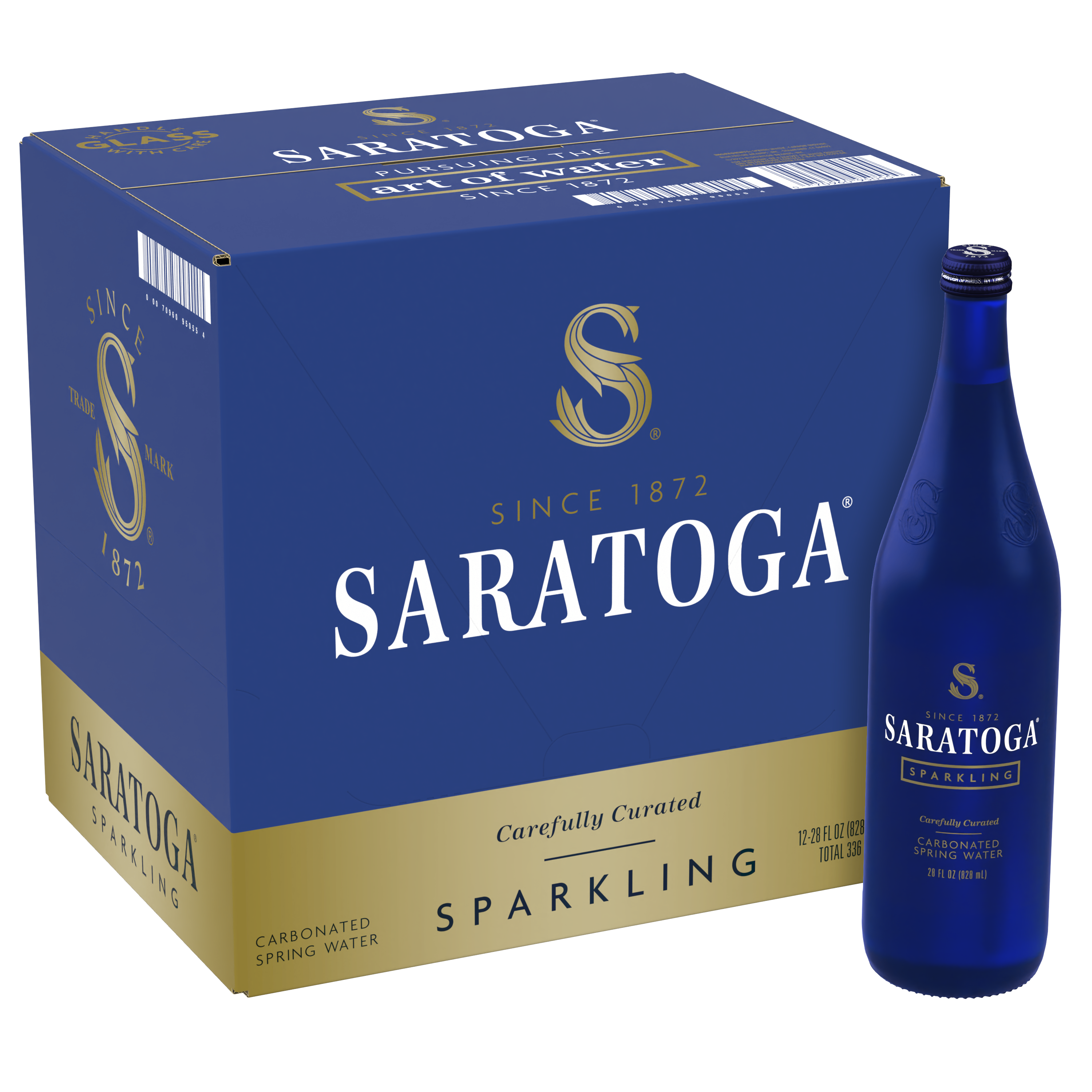 Saratoga Sparkling Spring Water, Glass Water Bottle, 28 Oz, (Pack of 12)