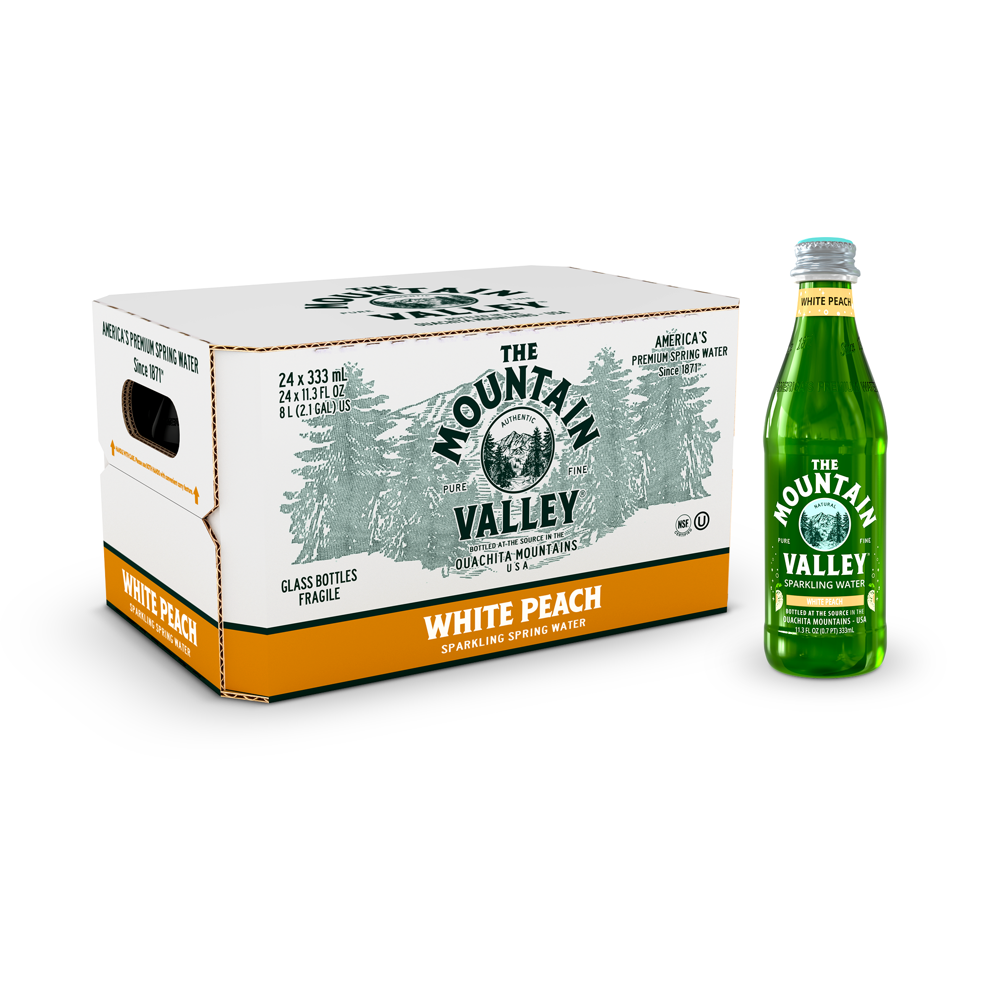 Mountain Valley Spring Water Sparkling White Peach offers the sweetness of summer with zero calories, zero sweeteners and a bounty of tongue-tingling bubbles.